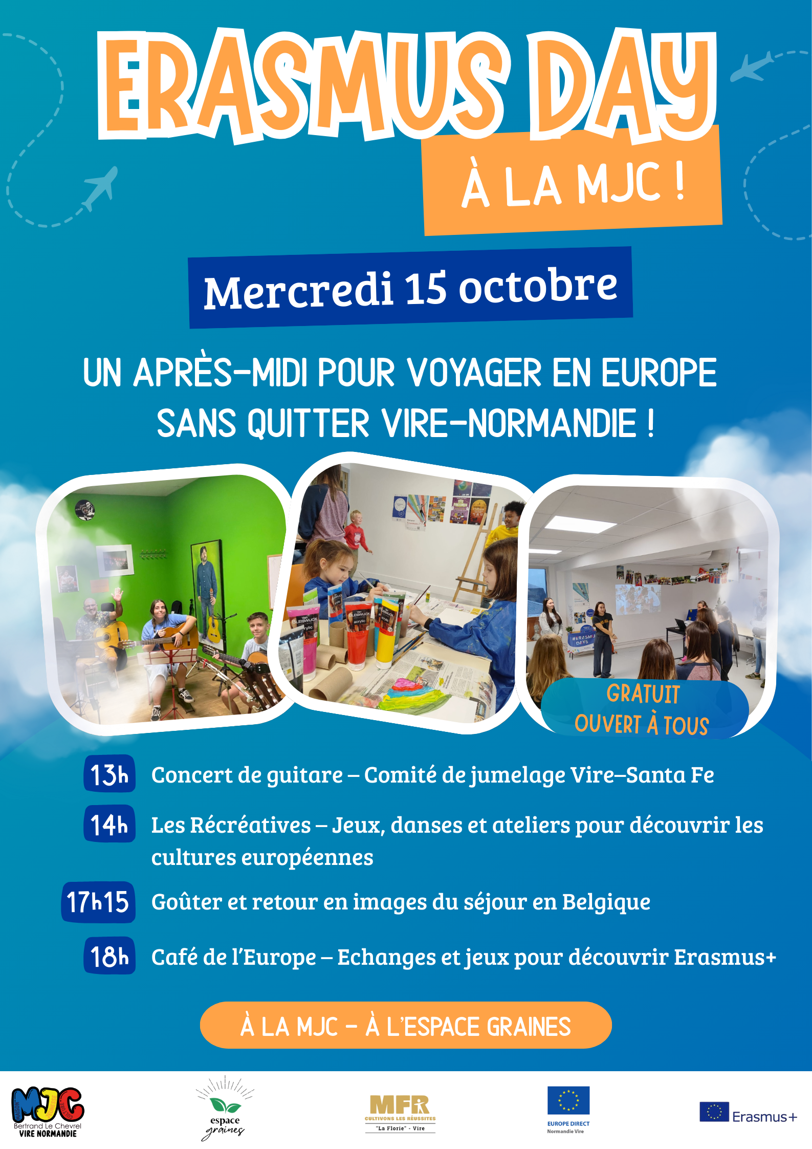À l’occasion des Erasmus Day, plongez au cœur de l’Europe le temps d’une journée festive et conviviale à la MJC ! |