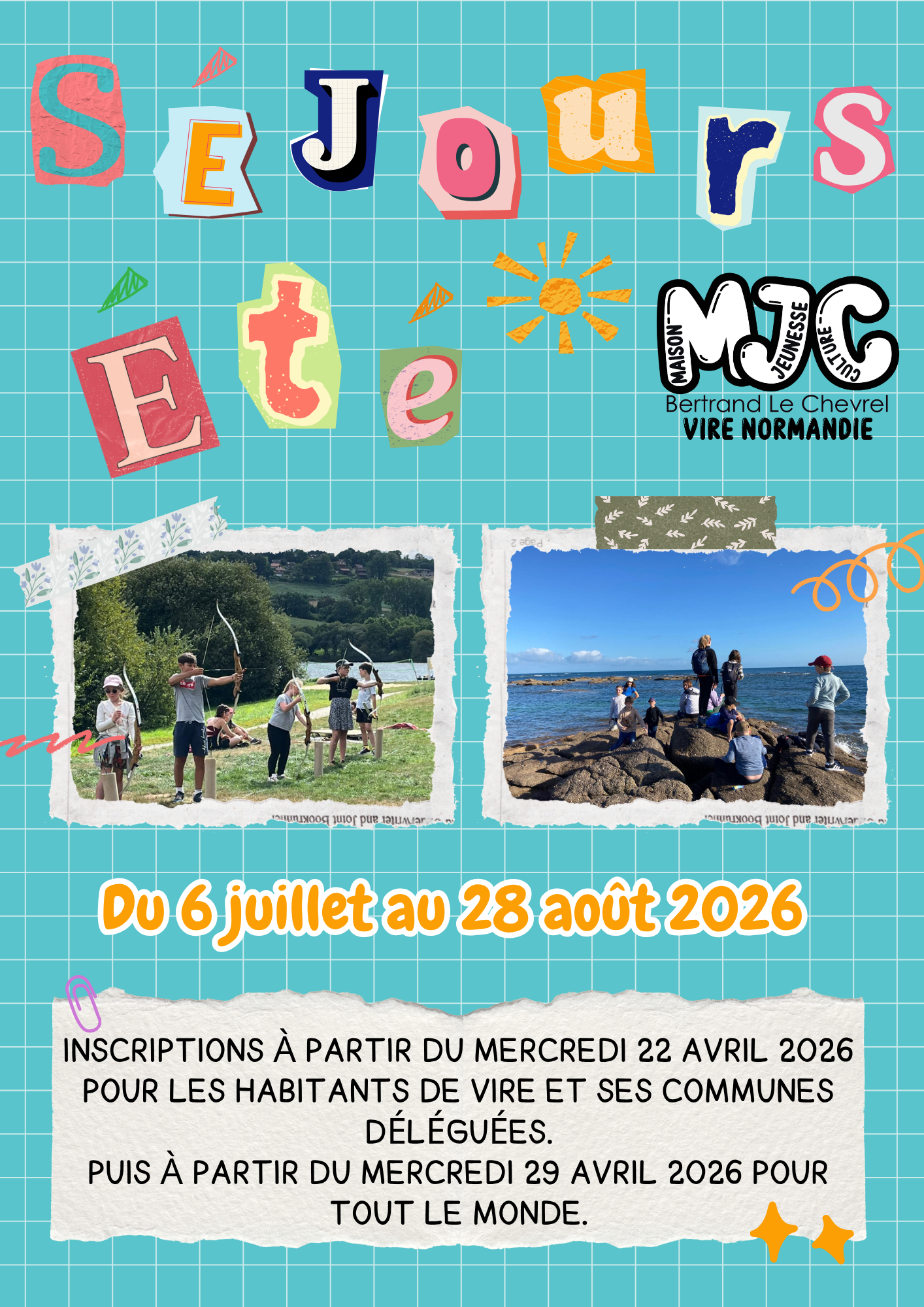 🌞 Ça y est, la plaquette des séjours de cet été est sortie ! 🌞 📅 Périodes d’inscription : 👉 À partir du mercredi 22 avril 2026 pour les habitants de Vire et ses communes déléguées 👉 À partir du mercredi 29 avril 2026 pour tout le monde |