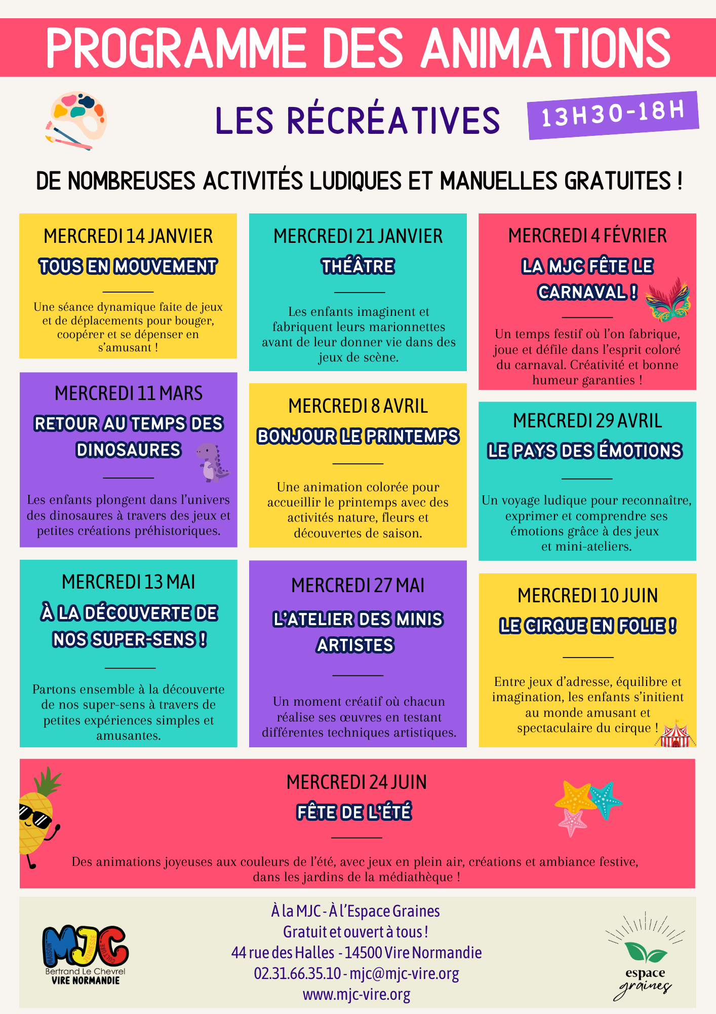 Tous les mercredis à partir de 13h30 l’équipe de la MJC propose des ateliers, des activités, des animations… Le tout en accès libre et gratuit !